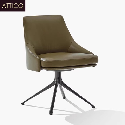Silla de comedor giratoria moderna con juego de mesa de cuero cromado para comedor