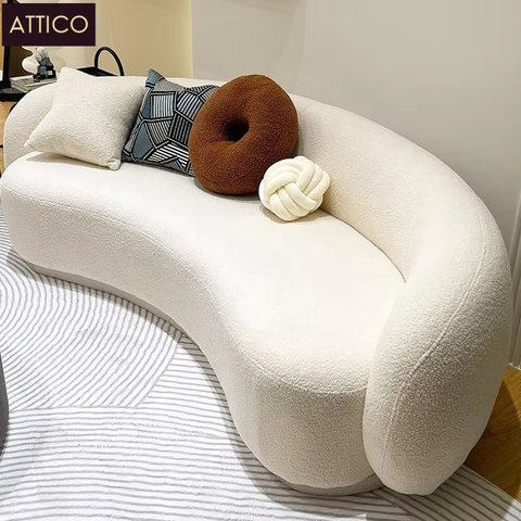 European Style Lounge White Velvet Teddy Fabric Curved Long Sofa for Home Living Room Hotel Villa Conversation Couch
